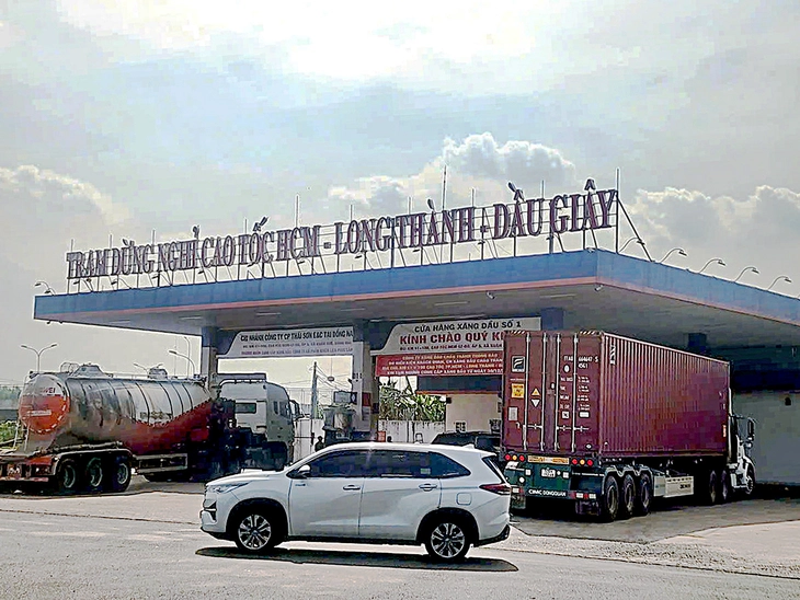 Xe cộ ra vào đổ xăng tại trạm dừng nghỉ Km41+100 trên cao tốc TP.HCM - Long Thành - Dầu Giây chiều 29-12 - Ảnh: HÀ MI