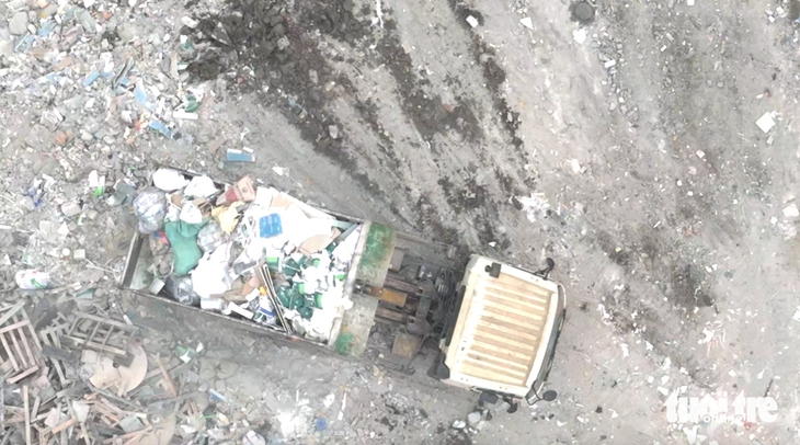 Sau khi trao đổi thông tin với lãnh đạo Phòng Kinh tế UBND xã Bát Tràng (Hà Nội) về bãi đổ thải rộng hàng ngàn m2 không phép phía sau đường Tiên Dung (thời điểm cuối tháng 11), đến ngày 12-12 chúng tôi tiếp tục quay lại bãi đổ thải này để ghi nhận thông tin thì phát hiện ô tô biển số Hà Nội đổ đủ loại rác thải xây dựng chưa phân loại rồi nhanh chóng rời đi - Ảnh: QUANG THẾ