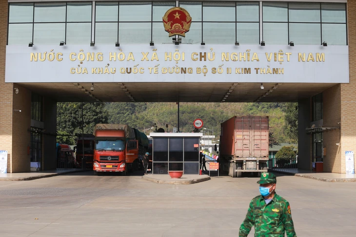 Xe chở hàng hóa thông quan qua cửa khẩu Kim Thành (Lào Cai) - Ảnh: C.TUỆ