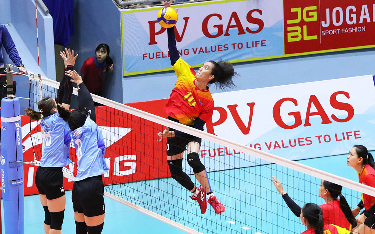 Một pha tấn công trên lưới dũng mãnh của Bích Tuyền - Ảnh: T.P.