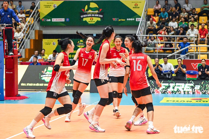 Phạm Quỳnh Hương cùng các đồng đội thi đấu lấn lướt trước XMLS Thanh Hóa - Ảnh: HỒNG QUANG