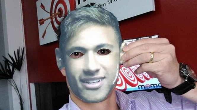 | Một CĐV Brazil chụp hình anh đeo mặt nạ Neymar đăng trên Facebook. Ảnh: Facebook |