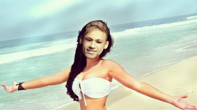 | Những CĐV nữ khi tắm trên bãi biển của hóa trang thành...Neymar. Ảnh: Getty Images |