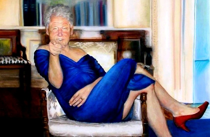 “Bức tranh cho thấy cựu Tổng thống (Bill Clinton) ngồi trên ghế trong Phòng Bầu dục, mang giày cao gót đỏ và tạo dáng gợi cảm trong chiếc đầm xanh gợi nhớ Monica Lewinsky.