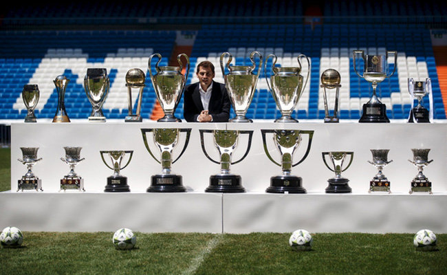 | Casillas và những chiếc cúp giành được cùng Real Madrid. Ảnh: Reuters |