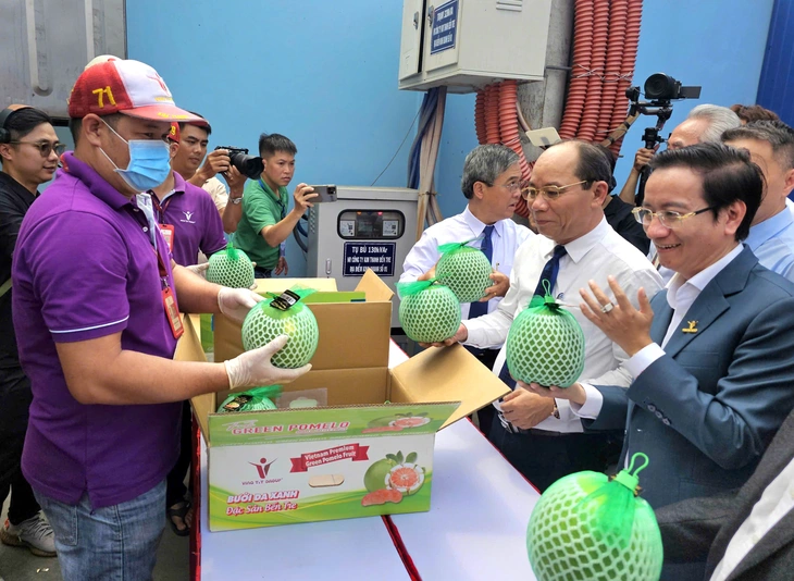 Lô bưởi da xanh Vĩnh Long được chính thức xuất sang thị trường Úc - Ảnh: N.TRÍ