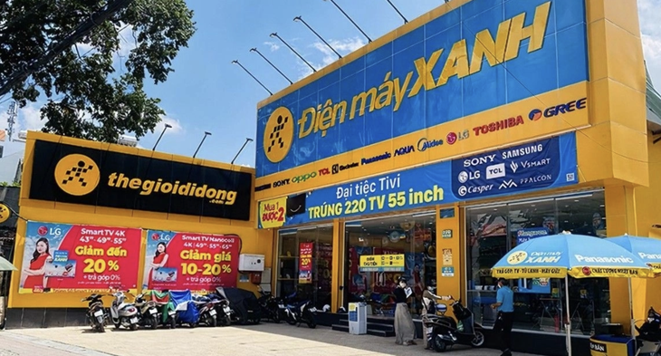 Bên ngoài cửa hàng Thế Giới Di Động và Điện Máy Xanh - Ảnh: MWG