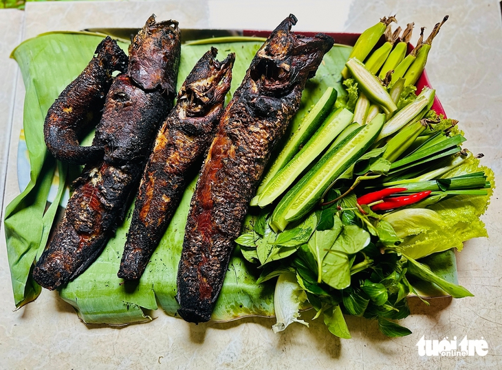 Cá lóc nướng ăn kèm với rau sống - Ảnh: ĐẶNG TUYẾT