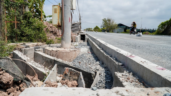 Trên đoạn đường chỉ gần 2km đã có đến hơn 30 điểm cột điện bị đường thoát nước "né" - Ảnh: THANH HUYỀN