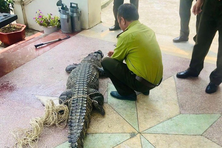 Cá sấu được cơ quan chức năng vây bắt an toàn - Ảnh: MXH