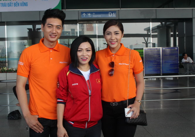 | Ba đại sứ đồng hành cùng đoàn TTVN (từ trái sang) Duy Linh, Phương Thanh, Thu Thảo. Ảnh: H.D |