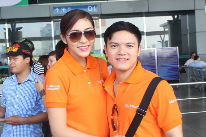 | Hoa hậu Thu Thảo và anh Quách Châu Anh Duy trước khi lên đường sang Singapore. Ảnh: H.D |