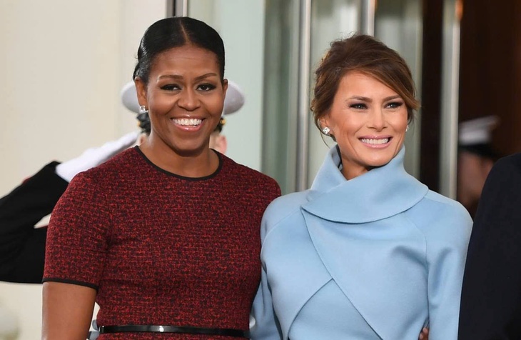 Bà Michelle Obama chào đón bà Melania Trump tại Nhà Trắng vào năm 2017 - Ảnh: AFP