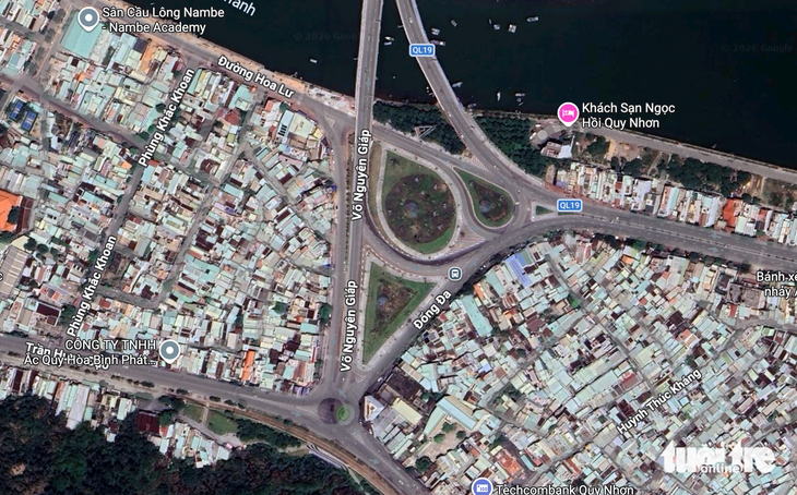 Toàn cảnh nút giao ngã năm Đống Đa - Hoa Lư, phường Quy Nhơn, Gia Lai, điểm nghẽn giao thông của đô thị Quy Nhơn hiện nay - Ảnh: Google Maps