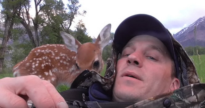 | Hươu con quyến luyến không chịu rời xa Darius - Ảnh chụp từ clip |