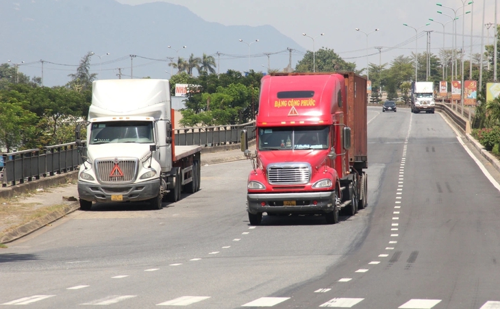 Trong thời gian cấm xe, các loại xe sơ mi rơ moóc, xe kéo rơ moóc lưu thông theo hướng từ cảng Tiên Sa đi Hội An theo lộ trình thay thế cảng Tiên Sa - quốc lộ 14B - quốc lộ 1 - Ảnh: TRƯỜNG TRUNG
