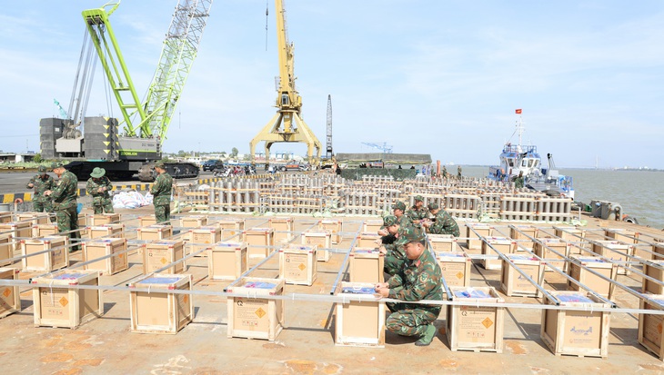 Bộ Chỉ huy quân sự thành phố Cần Thơ huy động gần 80 cán bộ chiến sĩ triển khai trận địa pháo hoa - Ảnh: TRUNG PHẠM
