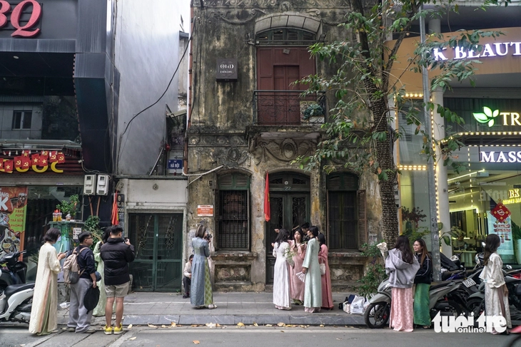 Chiều 5-2, cánh cửa gỗ đã cũ đóng kín, phía ngoài nhiều nàng thơ chờ đến lượt chụp ảnh. Sau những thông tin việc chụp ảnh gây phiền toái cho gia chủ, ai cũng nói chuyện nhỏ hơn, đứng chụp ảnh trên vỉa hè.