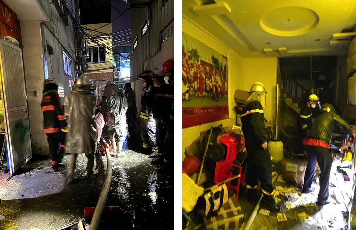 Căn nhà bốc cháy có 3 tầng và 1 tum. Ngọn lửa đã bùng phát từ tầng 2 rồi lan lên tầng 3.