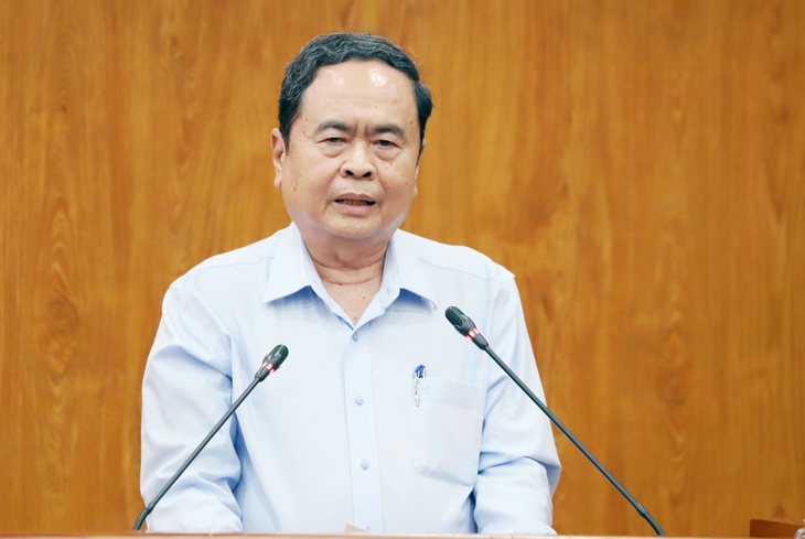 Chủ tịch Quốc hội Trần Thanh Mẫn phát biểu tại buổi gặp mặt nguyên lãnh đạo Trung ương, Quân khu 9 và thành phố Cần Thơ các thời kỳ ngày 1-2 - Ảnh: CHÍ QUỐC