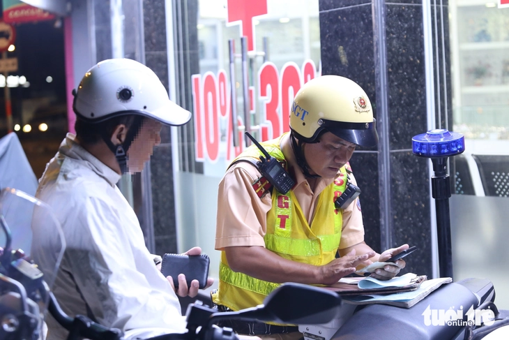 Đội cảnh sát giao thông Tân Sơn Nhất xử lý một trường hợp vi phạm nồng độ cồn - Ảnh: MINH HÒA