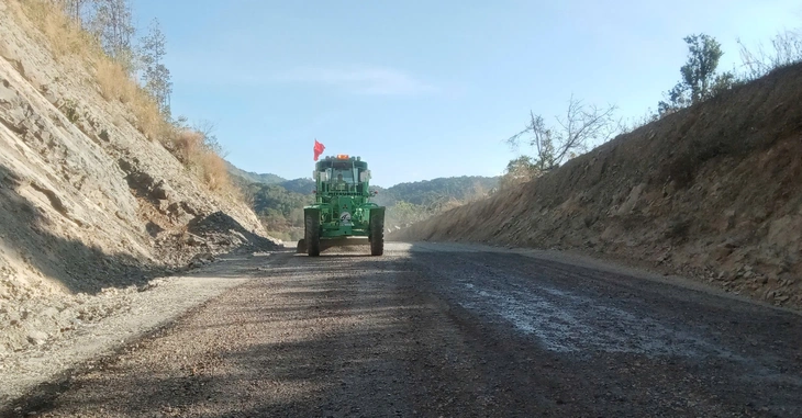"Đây là đoạn thi công khó nhất trên toàn tuyến, chúng tôi phải hạ nền hơn 8m và xẻ núi nắn lại cua. Trước Tết, do tiến độ đoạn này chưa kịp nên nhà thầu thảm tạm một lớp đá mi cho xe cộ qua lại êm thuận", ông Chung cho hay.