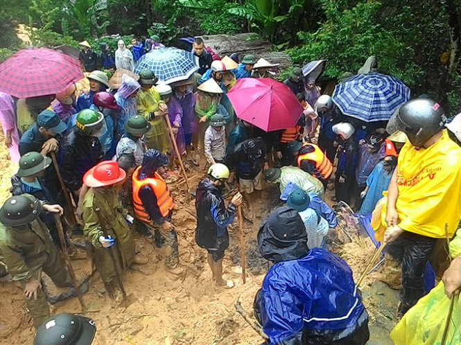 | Lực lượng cứu hộ tìm kiếm nạn nhân mắc kẹt tại nơi ba ngôi nhà bị sập ngày 28-7- Ảnh tư liệu TT. |