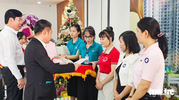 Việc trao sổ hồng cho những cư dân đầu tiên của dự án nhà ở xã hội chỉ sau vài tháng bàn giao nhà khiến người dân yên tâm hơn với loại hình nhà ở an sinh xã hội này - Ảnh: BÁ SƠN
