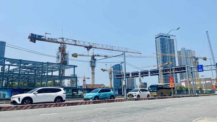 Nhu cầu về vật liệu xây dựng ở Đà Nẵng tăng cao khi hàng loạt công trình xây dựng mọc lên - Ảnh: TRƯỜNG TRUNG