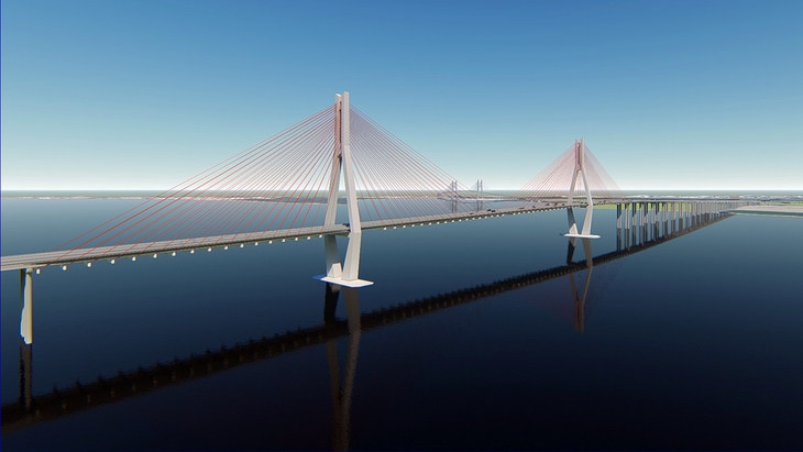 Mô hình cầu Cát Lái thay phà Cát Lái kết nối giao thông giữa Đồng Nai và TP.HCM - Ảnh: TTO
