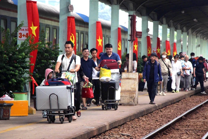 Theo ghi nhận chiều cùng ngày, đoàn tàu SE7 hướng Bắc - Nam đã dừng tại ga Biên Hòa. Tại đây, hàng trăm hành khách lần lượt xuống tàu, kéo hành lý ra cổng ga và lên các xe trung chuyển được bố trí sẵn.