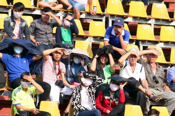 | Khán giả đội nắng theo dõi buổi tập của các cầu thủ HAGL. Ảnh: N.K |