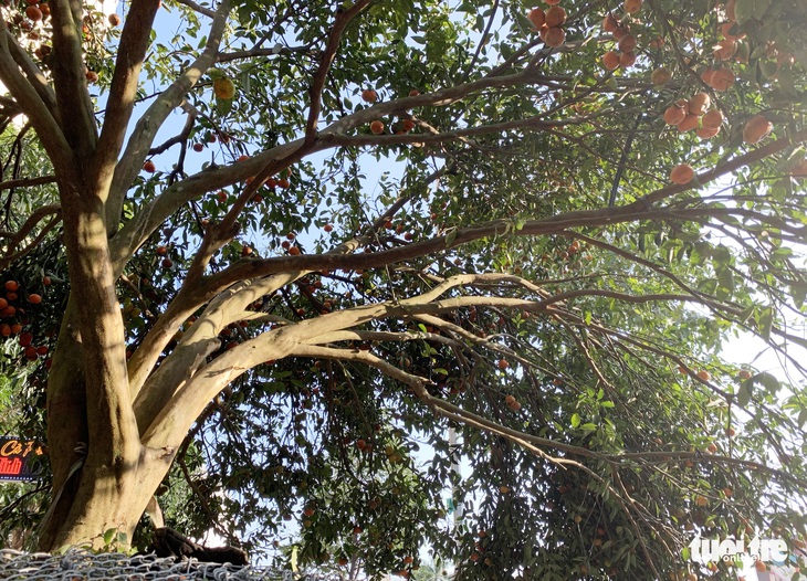 Cây quýt đặc biệt này có đường kính thân gần 30cm, cao gần 4m, tán rộng khoảng 3,5m - Ảnh: DOÃN HÒA