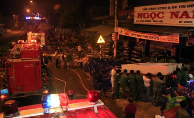 | Hiện trường vụ cháy lúc nửa đêm - Ảnh: T.T.Nhi |