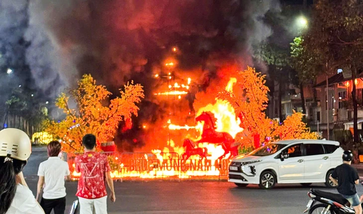Ngày 6-2, ông Trần Hải Quốc - Chủ tịch UBND phường Hà Tiên (tỉnh An Giang) - xác nhận khu vực trang trí tiểu cảnh đón Tết Nguyên đán Bính Ngọ 2026 (đối diện công viên 9 Nàng Tiên) đã xảy ra vụ cháy trong đêm. Lực lượng chức năng địa phương sau đó đến dập tắt lửa.