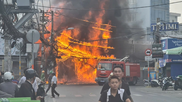Theo ghi nhận, vụ cháy khiến một cửa hàng bán nội thất và tiệm trà sữa, điện thoại bị cháy lan - Ảnh: MINH HÒA
