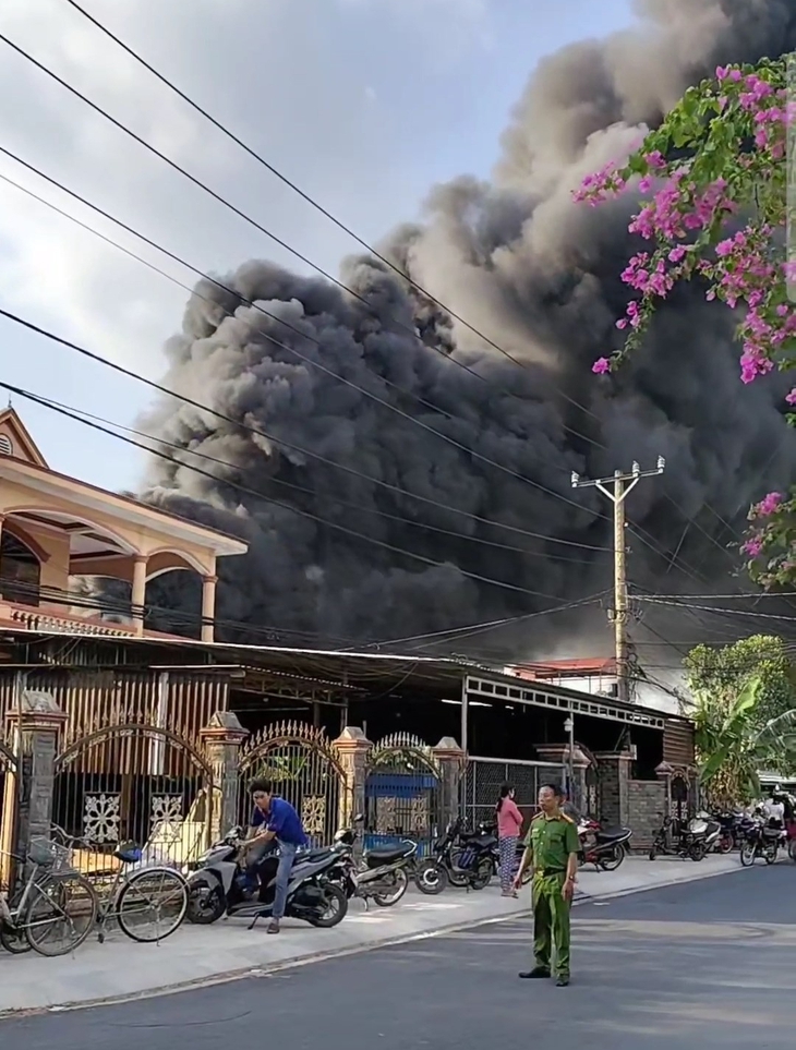 Cột khói đen bốc cao hàng chục mét từ vụ cháy - Ảnh: MINH HIẾU
