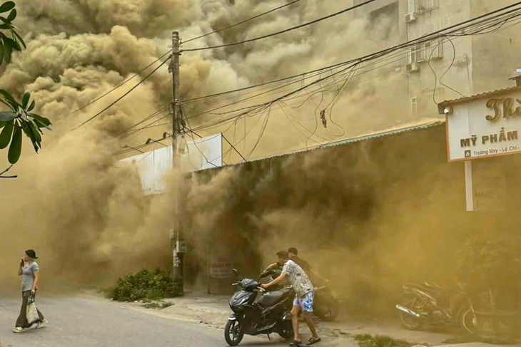 Theo hình ảnh tại hiện trường, một số người dân kịp thời di chuyển xe máy, tài sản có giá trị khi đám cháy bắt đầu bốc khói. Sau đó một lúc, nhiều cột khói lớn màu đen nhanh chóng lớn dần, bao trùm một khu vực dân cư.