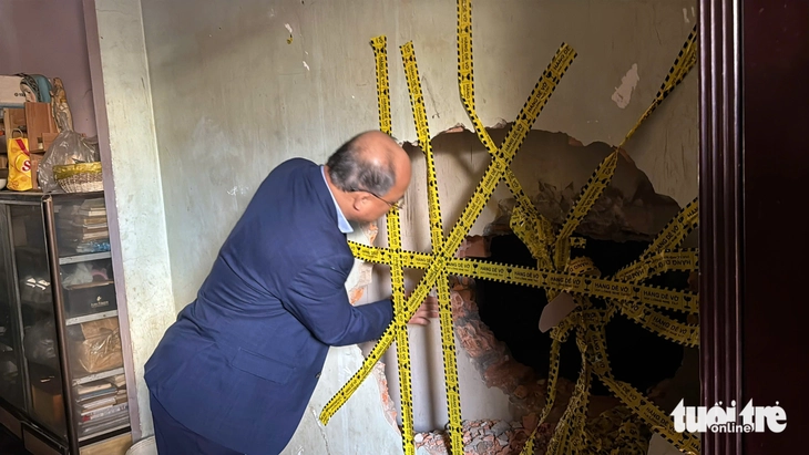 Lỗ thủng do lực lượng chức năng đục từ nhà hàng xóm - Ảnh: TRUNG TÂN