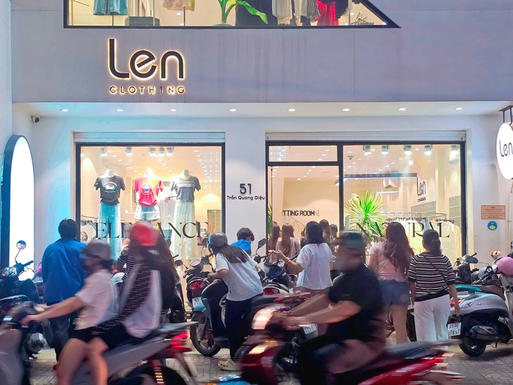 Cao điểm vào đầu giờ tối, con phố ken đặc người liên tục đổ về. Các bãi giữ xe trước cửa hàng nhanh chóng quá tải. Dọc hai bên tuyến phố, loạt cửa hiệu local brand, shop giày sáng đèn, nhân viên liên tục tư vấn, tính tiền, khách ra vào không ngớt.