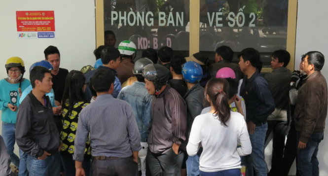 | Từ 13g đã có đông đảo người hâm mộ tụ tập trước cửa phòng vé. Ảnh: S.H |