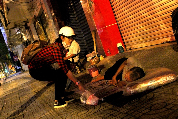 Cô Trần Thị Thanh Hằng (Q.6, TP.HCM) dù lớn tuổi nhưng vẫn tham gia cùng nhóm bạn trẻ không thiếu lần nào. Cô tâm sự: "Có đi mới thấy thương những người vô gia cư. Có những cụ già mà lẽ ra ở tuổi đó họ phải được sống vui vầy cùng con cháu nhưng hoàn cảnh đẩy đưa họ phải ngủ ngoài đường, đối mặt với sương gió".
