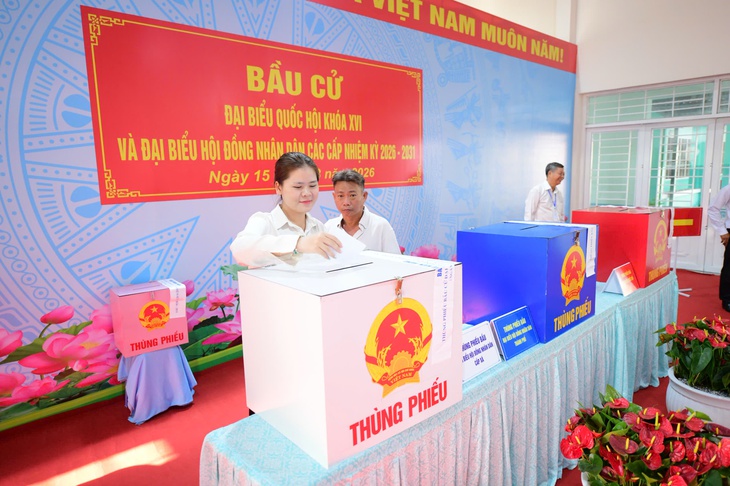 Người dân xã Hóc Môn, TP.HCM bỏ phiếu bầu cử sáng 15-3 - Ảnh: QUANG ĐỊNH