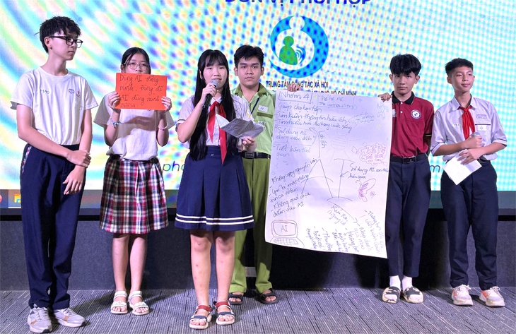 Dẫn khảo sát của tổ chức phi lợi nhuận Common Sense Media, nhóm học sinh thuyết trình chủ đề "Các vấn đề mà các bạn cho rằng mình cần quan tâm và lưu ý khi sử dụng AI trong học tập và vui chơi giải trí" cho biết có 72% thanh thiếu niên từng trò chuyện với AI, 33% chọn chia sẻ những câu chuyện quan trọng với AI thay vì với bạn bè hoặc người thân. Do vậy càng phải sử dụng AI một cách thông minh và có trách nhiệm.