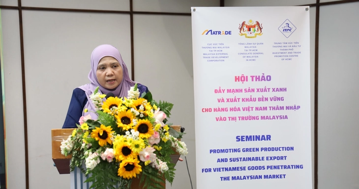 Bà Zaimah Osman, Lãnh sự Thương mại, Cục Xúc tiến thương mại Malaysia tại TP.HCM (MATRADE), phát biểu tại hội thảo - Ảnh: TRƯƠNG LINH