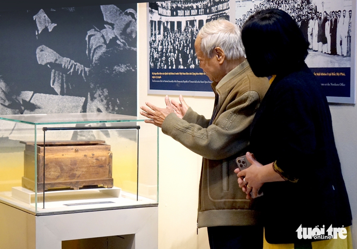 Vui mừng "gặp lại" chiếc hòm phiếu đặc biệt tại trưng bày, ông Triệu Văn Hiển - nguyên Giám đốc Bảo tàng Cách mạng Việt Nam (nay là Bảo tàng Lịch sử quốc gia) - chia sẻ về chiếc hòm đặc biệt mà thời ông còn công tác tại Bảo tàng Cách mạng Việt Nam đã sưu tầm được.