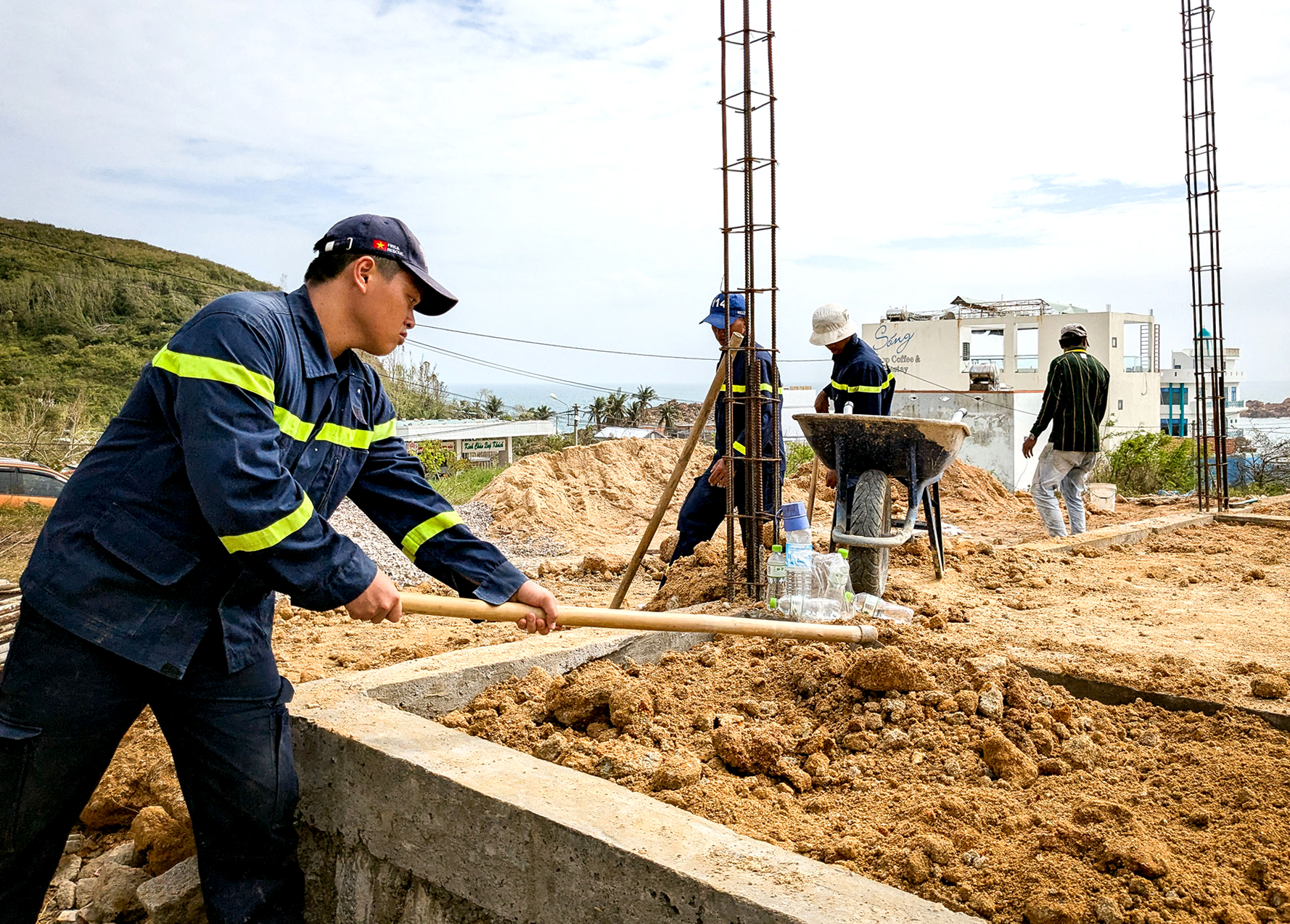 Tại khu phố Hải Bắc, phường Quy Nhơn Đông, Gia Lai (xã Nhơn Hải, TP Quy Nhơn, Bình Định cũ), các chiến sĩ trẻ thuộc Phòng Cảnh sát phòng cháy chữa cháy và cứu nạn cứu hộ, Công an tỉnh Gia Lai, lăn lộn cùng đội thợ xây lại những ngôi nhà tái định cư vùng thiên tai.