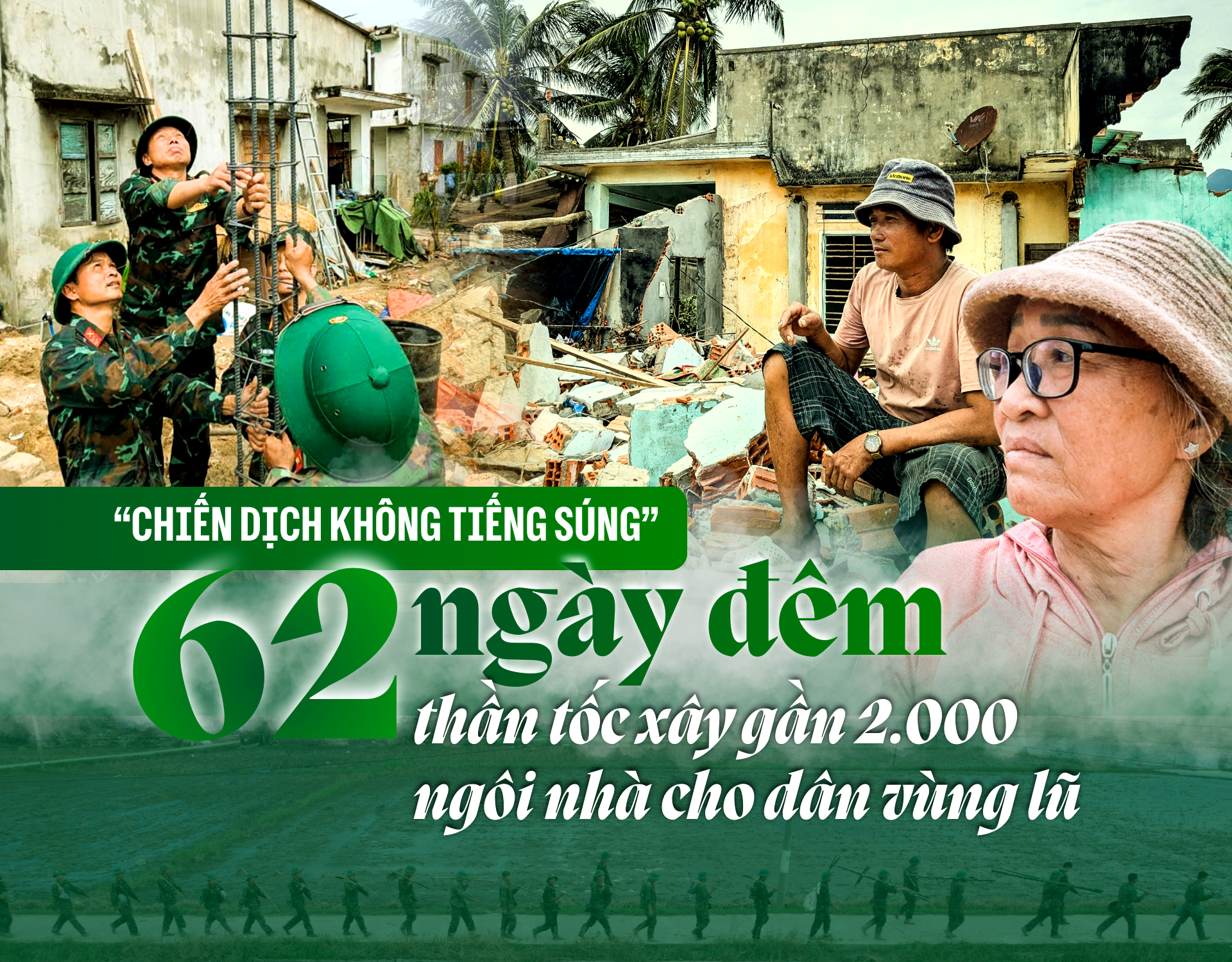 Thực hiện yêu cầu của Thủ tướng, một cuộc hành quân thần tốc, quy mô trên cả nước hướng về vùng lũ miền Trung của các lực lượng quân đội, công an, các địa phương. Từ chỗ canh cánh nỗi lo sạt lở, bão lũ trong những ngôi nhà sơ sài được làm hàng chục năm trước tại các làng quê nghèo, Chiến dịch Quang Trung không chỉ "vá lành lặn" lại những mảng rách ở xóm làng sau lũ mà tạo ra cơ hội an cư lâu dài và một bước đổi đời cho nhiều hộ dân vùng lũ.