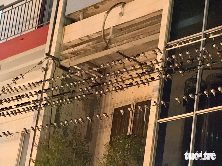 Chim én đậu dày đặc trên dây điện ở đường Lãnh Binh Cẩn từ nhiều tuần qua - Ảnh: HOÀI THƯƠNG