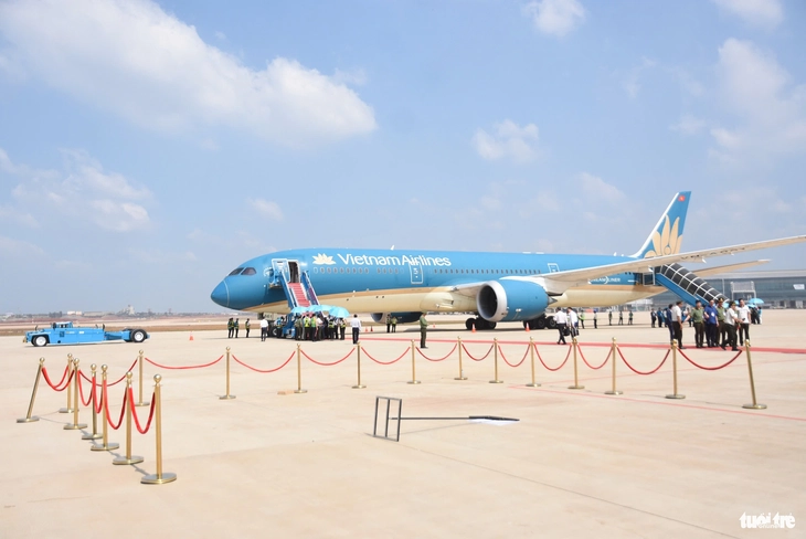 8h20 sáng 19-12-2025, máy bay Boeing 787 mang số hiệu VN1 chở các vị lãnh đạo Đảng và Nhà nước cùng gần 100 hành khách đã đáp chuyến bay đầu tiên xuống sân bay Long Thành. Sân bay Long Thành đang được kỳ vọng đưa vào khai thác thương mại từ tháng 6-2026 - Ảnh: A LỘC